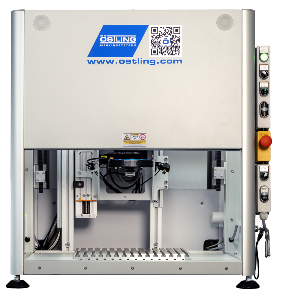 The laser is safely switched off when the sliding door is opened and an emergency stop device is also provided.